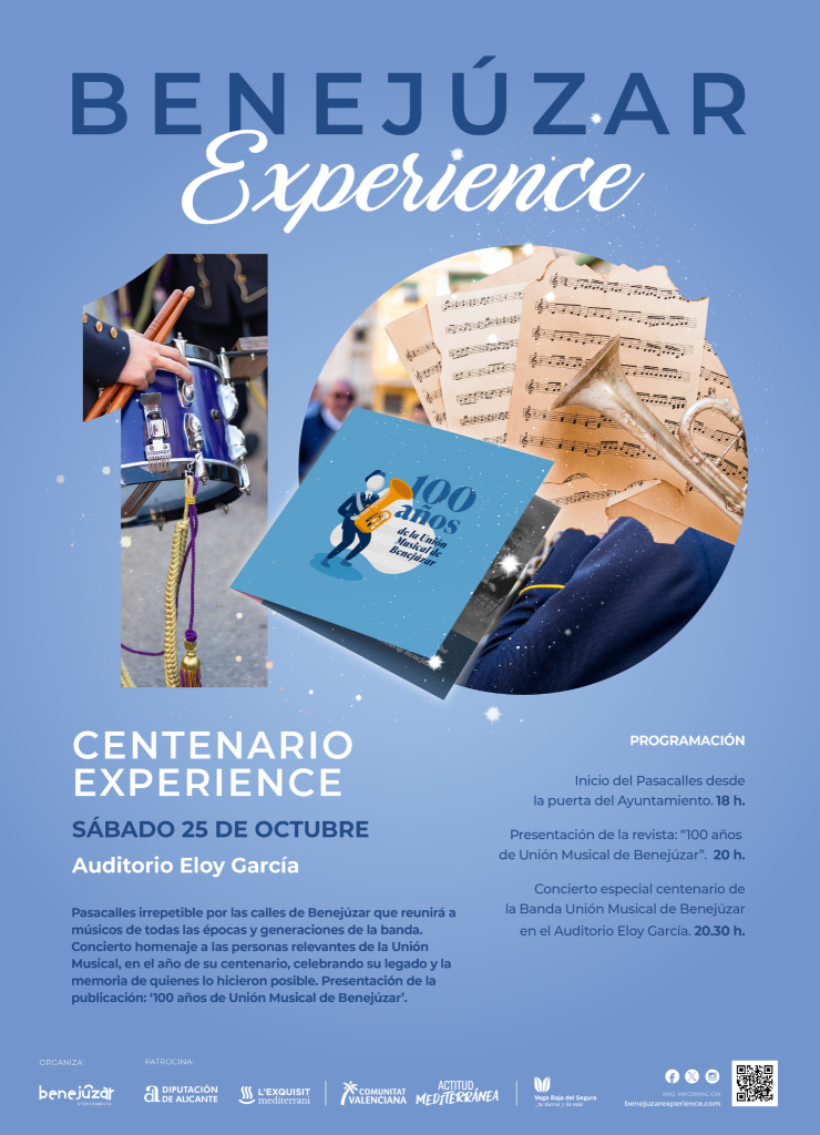 El sábado 25 de octubre, Benejúzar vivirá una jornada de homenaje a la historia y la cultura local con la Centenario Experience, dedicada al 100º aniversario de la Banda Unión Musical de Benejúzar. La cita combinará emoción, reconocimiento y música, y contará con la participación de músicos de distintas generaciones que volverán a llenar las calles del municipio de acordes y recuerdos.